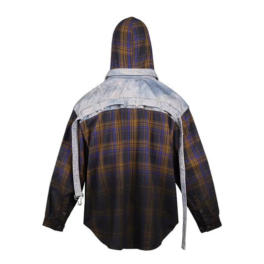 Gradient Plaid Hooded Overshirt