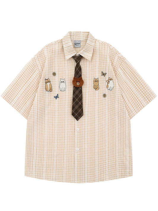 Plaid Band Collar Shirt