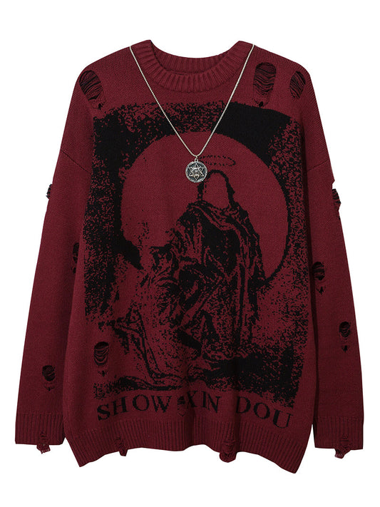 Normal fiyat 1,499.00TLNormal fiyatBirim fiyat / /İndirimli fiyat 1,499.00TLElevate your wardrobe with this edgy and unique gothic-style sweater, perfect for those who embrace a darker aesthetic. Featuring a captivating hooded figure design, this sweater is adorned with distressed elements that add a rugged, lived-in look. Made from a comfortable and durable blend of materials, this sweater ensures warmth and style throughout the cooler seasons. Available in multiple colorways, including deep red, black, and... -