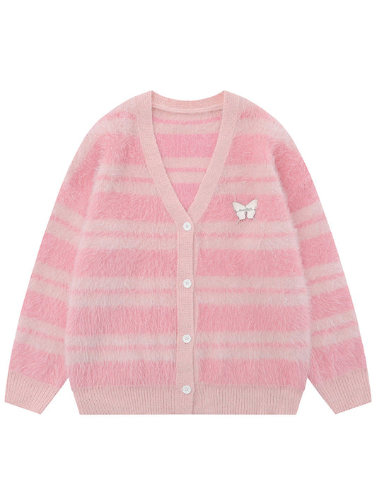 Normal fiyat 1,774.05TLNormal fiyatBirim fiyat / /İndirimli fiyat 1,774.05TLWrap yourself in the ultimate in cozy comfort with our Striped Fuzzy Cardigan, available in chic black-and-white and sweet pink-and-white variations. This cardigan is perfect for adding a stylish touch to any outfit while keeping you warm and snug. Features: Eye-catching Design: Featuring playful stripes and a delicate butterfly embellishment, this cardigan is a unique blend of elegance and fun. Luxurious Material: Crafted from super... -