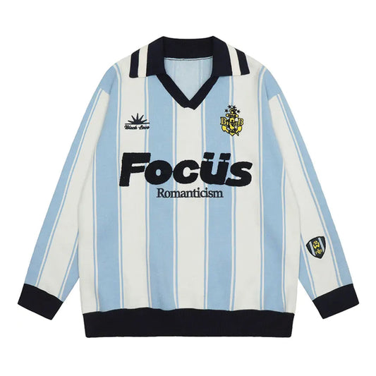 Normal fiyat 4,454.72TLNormal fiyatBirim fiyat / /İndirimli fiyat 4,454.72TLAn ode to sports classics, this striped jacquard knit is finished with graphic lettering and crest embroidery that suggest effortless confidence. Its deep V-neck and tailored drape create a sleek silhouette perfect for layered looks. Material: Cotton, Nylon, Wool V-neck Turn-down collar Pull-over Oversized fit -