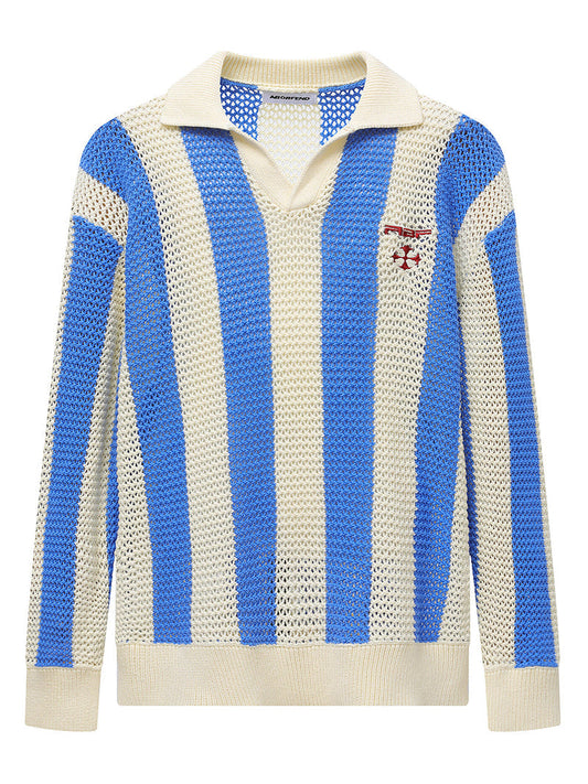 Normal fiyat 1,650.25TLNormal fiyatBirim fiyat / /İndirimli fiyat 1,650.25TLRefresh your wardrobe with this hollow out striped knit polo sweater, designed with a breathable mesh texture and bold vertical stripes. The open-knit construction keeps it lightweight and airy, while the cotton-rich fabric ensures softness and all-day comfort. Featuring a relaxed polo collar and available in classic blue or black, this sweater blends retro sportswear inspiration with modern street style. Easy to pair with jeans,... -