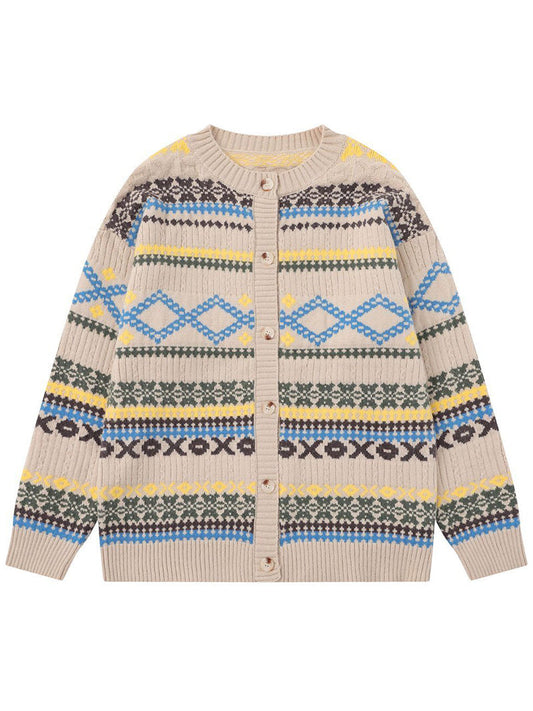 Normal fiyat 1,732.78TLNormal fiyatBirim fiyat / /İndirimli fiyat 1,732.78TLRefresh your seasonal wardrobe with this beige Fair Isle cardigan, designed with a timeless button-down style and soft knit texture. The blend of acrylic, nylon, and polyester ensures warmth without bulk, while the relaxed fit offers comfort for daily wear. Featuring charming geometric jacquard in subtle yet lively colors, this cardigan is the perfect layering piece for chilly days. A versatile and elegant knitwear staple... -