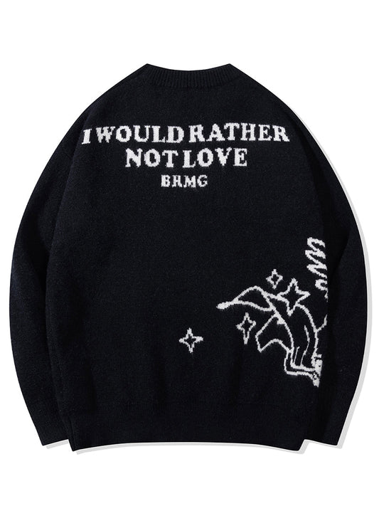 Normal fiyat 1,815.32TLNormal fiyatBirim fiyat / /İndirimli fiyat 1,815.32TLElevate your fashion game with this striking graphic sweater, designed for those who love to make a statement. This unisex sweater features a bold black and white design, with a playful yet edgy depiction of Cupid aiming at a broken heart, complemented by the impactful phrase "I Would Rather Not Love" on the back. Made from a high-quality blend of materials, including 42% acrylic, 30%... -