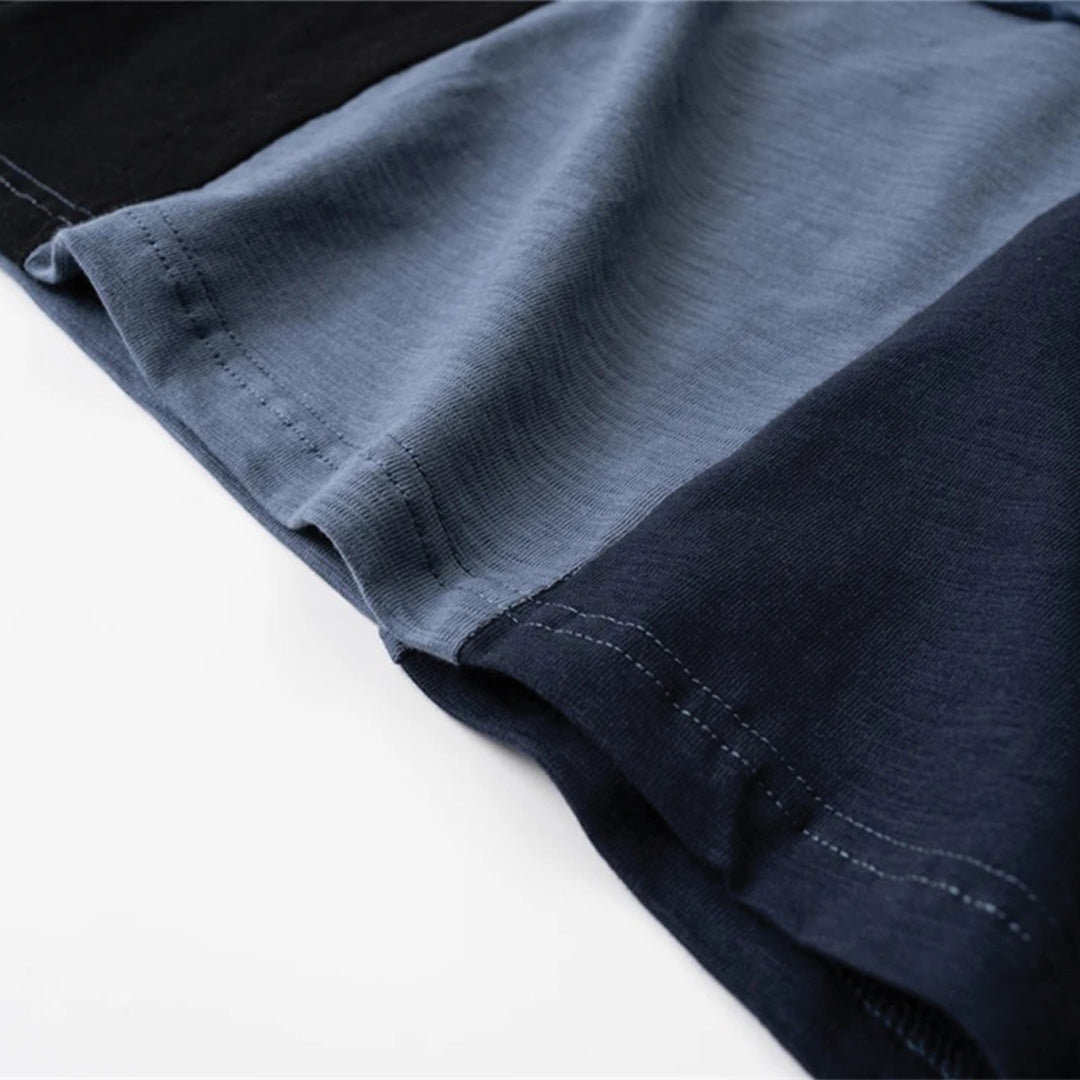 Expertly crafted from a bamboo cotton blend, this oversized T-shirt combines a vintage-inspired aesthetic with modern versatility. The splice colorblock design in blue and navy elevates casual dressing, while its relaxed silhouette ensures both comfort and style throughout the day.