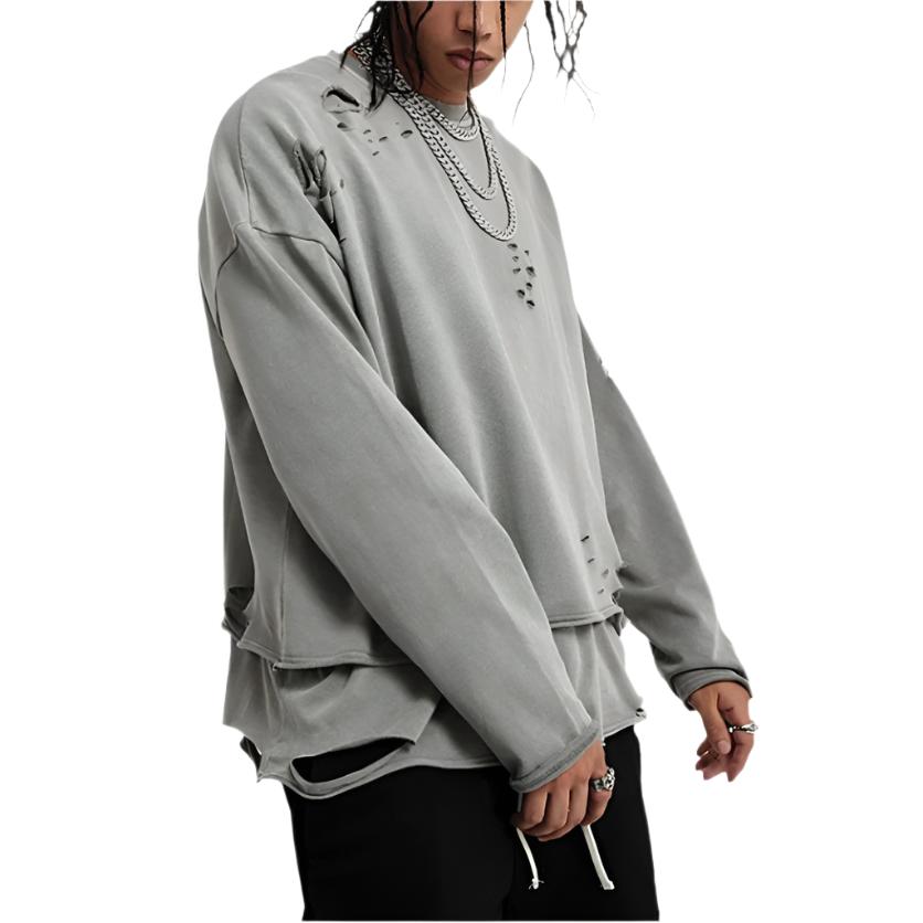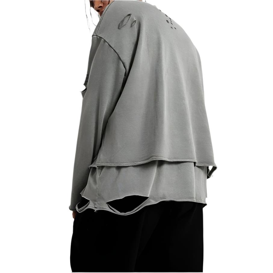 This meticulously crafted double-layered t-shirt celebrates considered deconstruction through its oversized silhouette and precise distressing. Rendered in pure cotton, it offers sophisticated casual wear for those who appreciate deliberate imperfection.