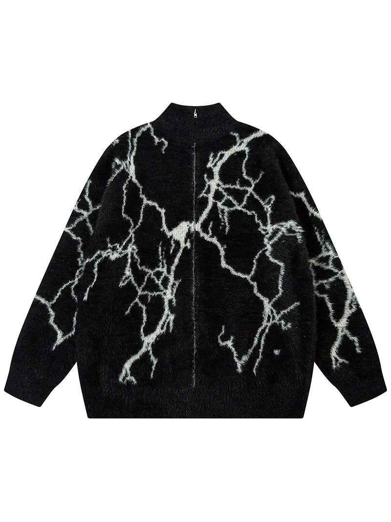 Design: Eye-catching lightning pattern jacquard that adds a modern and edgy touch to the cardigan.