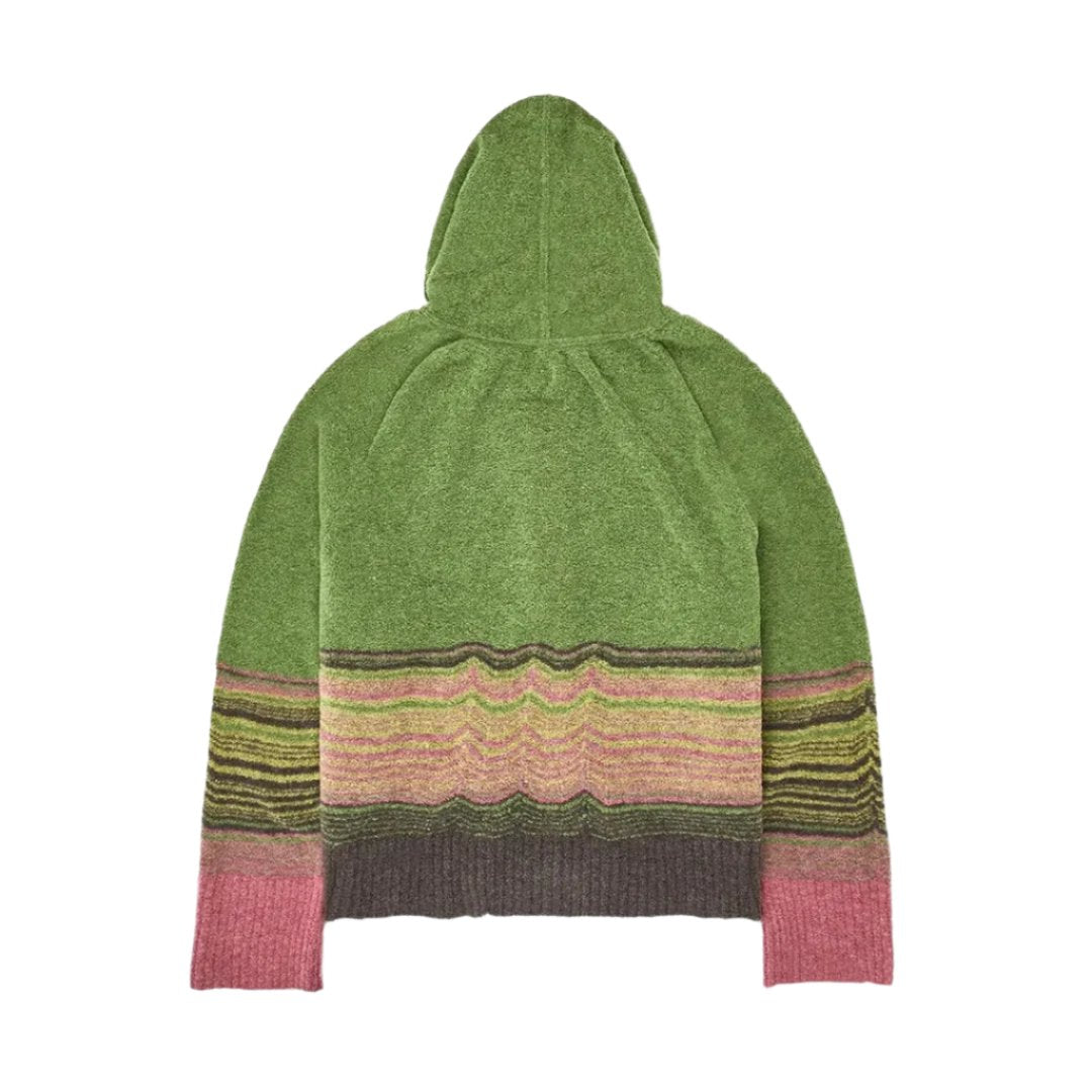 Cozy hooded cardigan with luxurious bouclé yarn construction and slim, tailored fit. The ribbed detailing, side pockets and zippered front ensure a refined, yet modern aesthetic that seamlessly blends comfort and style.