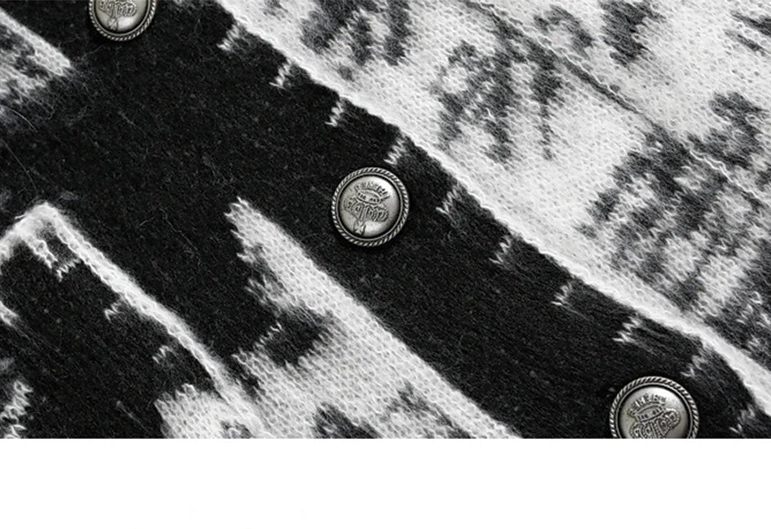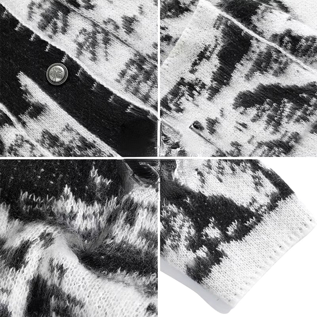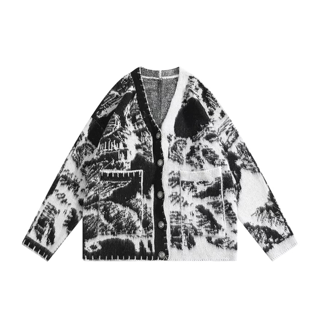 A versatile addition to any curated wardrobe, this cardigan features a bold black-and-white graffiti-inspired print that effortlessly balances modern edge with timeless comfort. The V-neck and single-breasted closure allow for layering ease, while the premium knit blend ensures lasting softness and warmth.