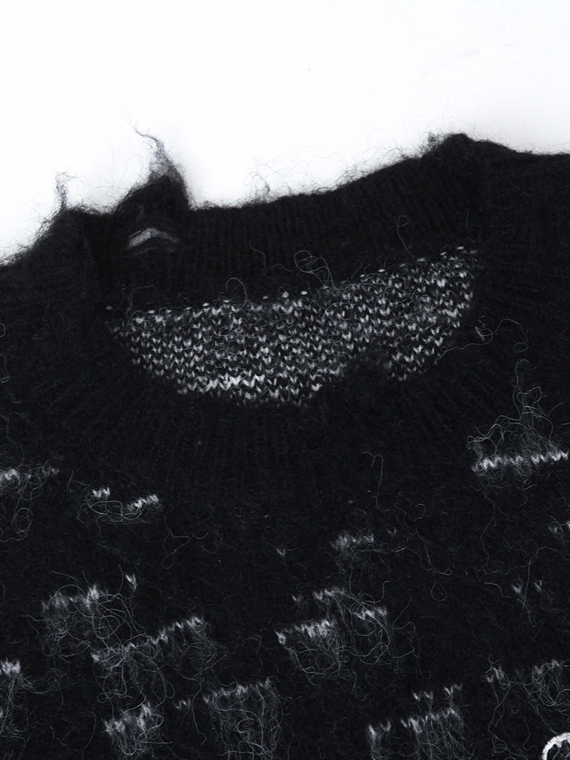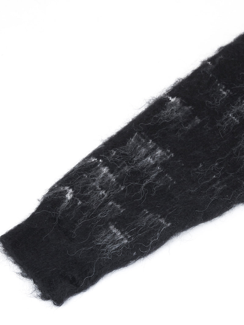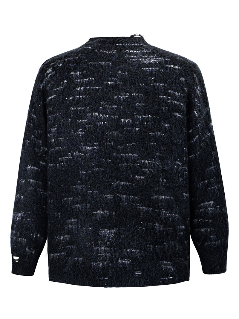 Elevate your casual wardrobe with this vintage-inspired fuzzy knit sweater, designed for both style and comfort. Crafted from a premium blend of nylon, polyester, wool, and acrylic, this sweater offers warmth and durability while maintaining a soft, comfortable feel. The unique distressed pattern gives it a rugged yet trendy look, perfect for those who appreciate understated style. The subtle letter embroidery on the front adds a touch of individuality. Available in two classic shades—black and army green—this sweater is ideal for layering or wearing on its own. Pair it with your favorite jeans or chinos for a relaxed, effortlessly cool outfit.