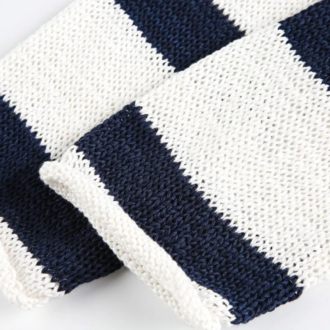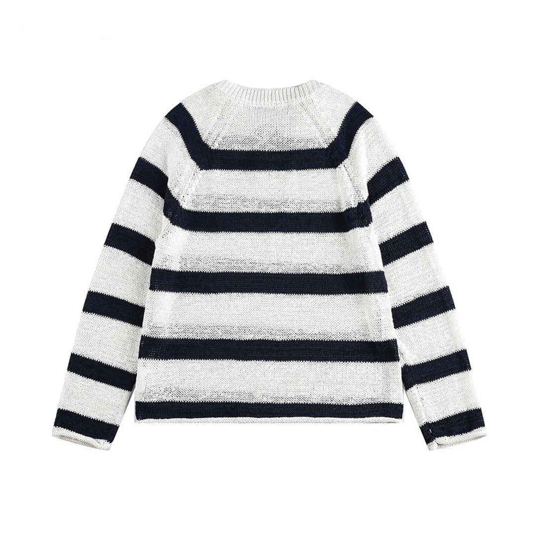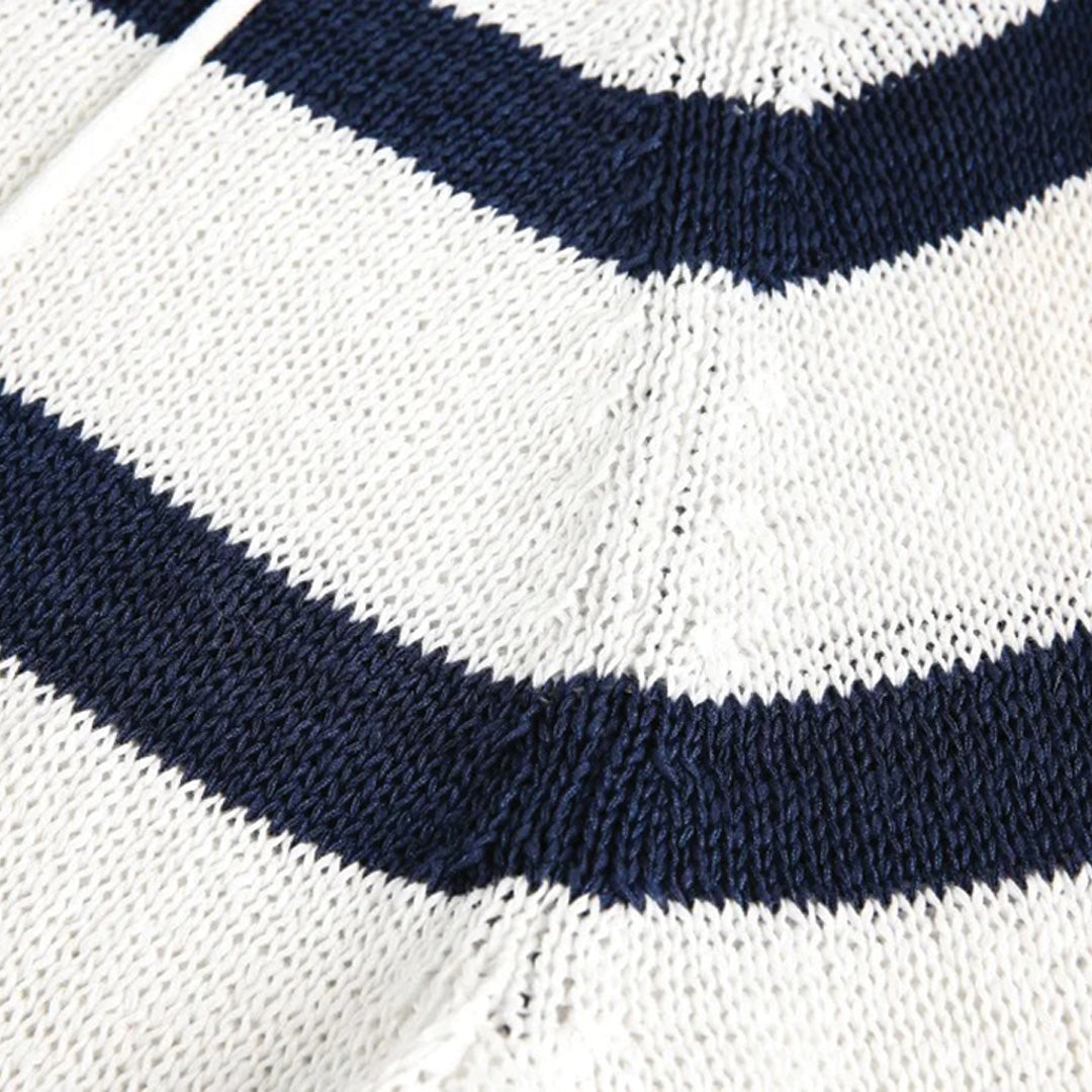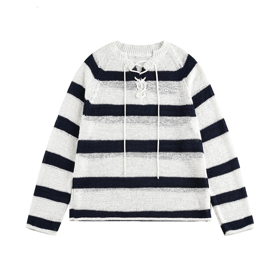 The lace-up neckline gives this striped sweater a subtle focal point, while the cotton knit offers an easy, relaxed drape. It’s the kind of piece that feels as natural on a breezy afternoon as it does layered for cooler nights.