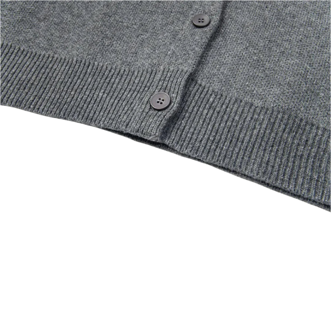 This cardigan keeps things clean with a simple crew neckline and muted logo hit at the chest. It’s the kind of piece that slips easily into any rotation, whether layered or worn solo.