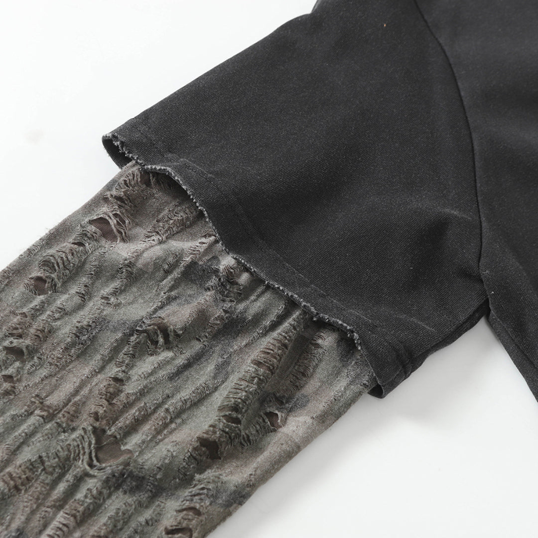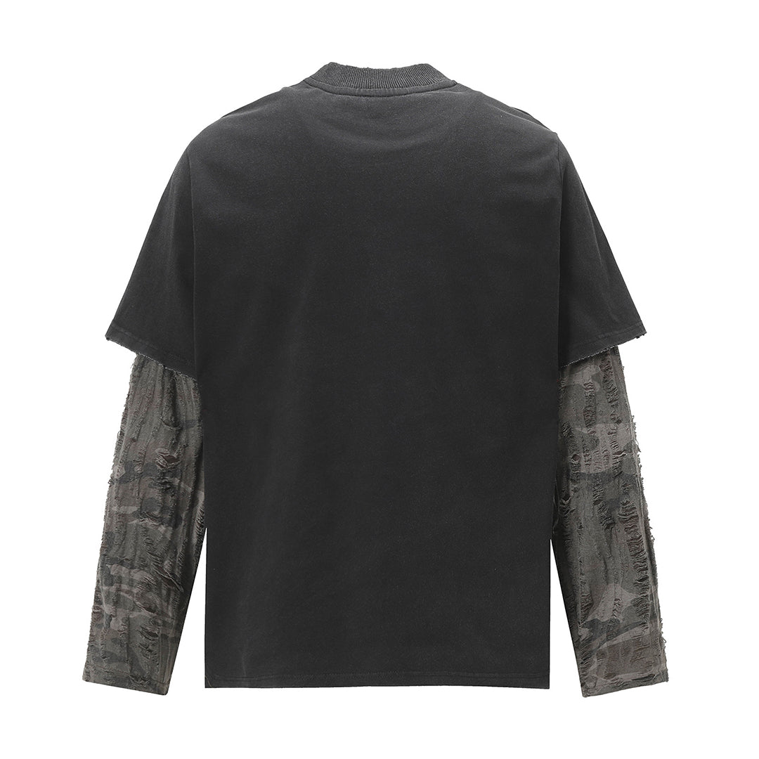This distinctive long-sleeve t-shirt combines eye-catching camouflage ripped sleeves with a perfectly faded bullseye graphic for a look that stands out effortlessly.