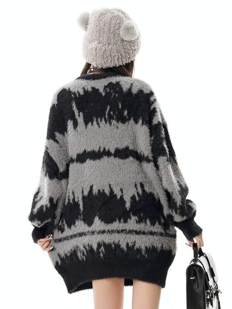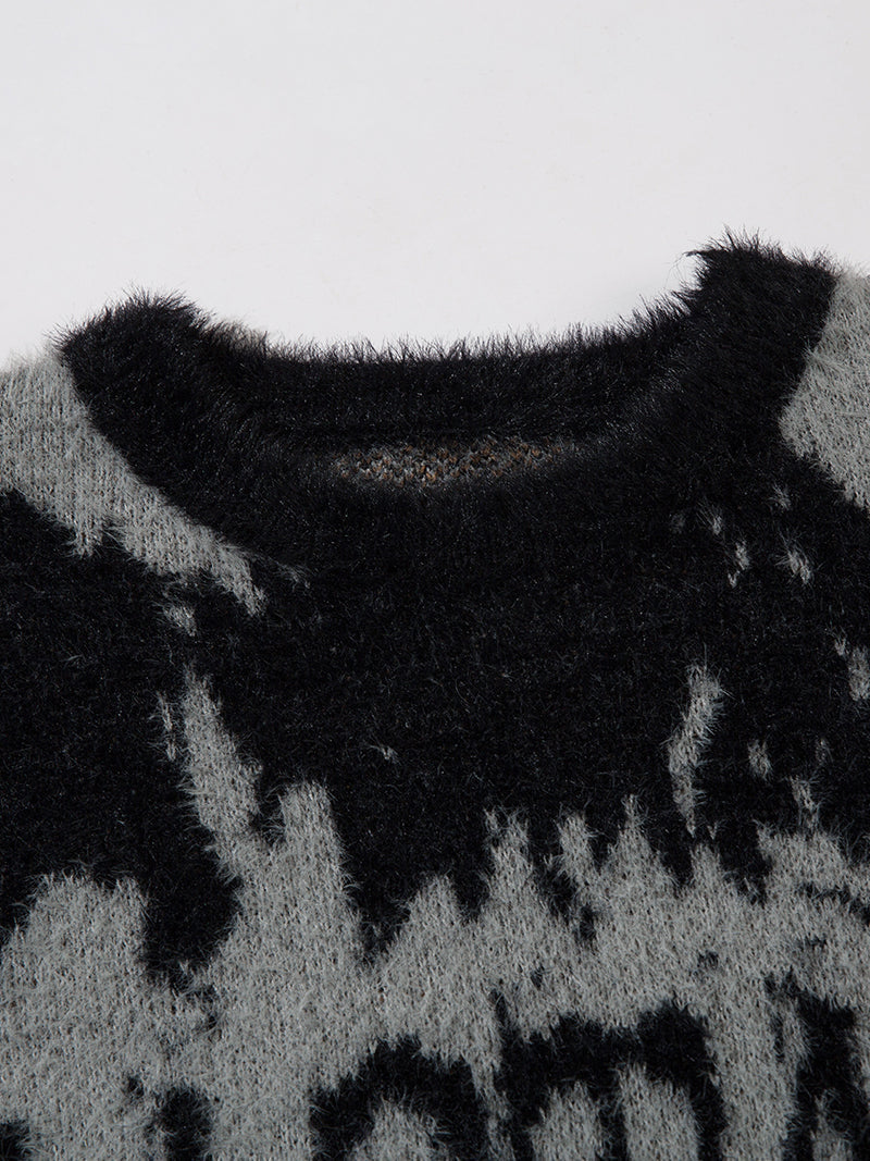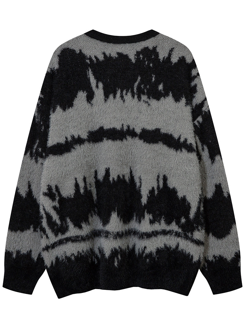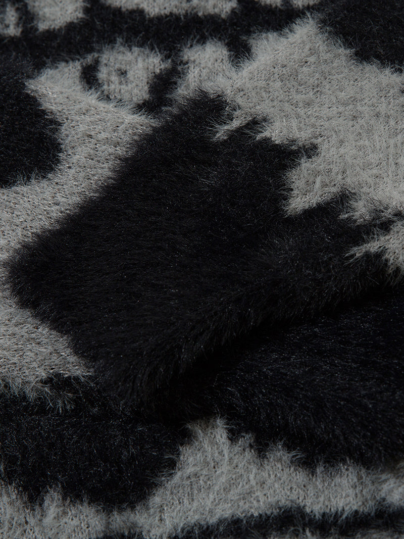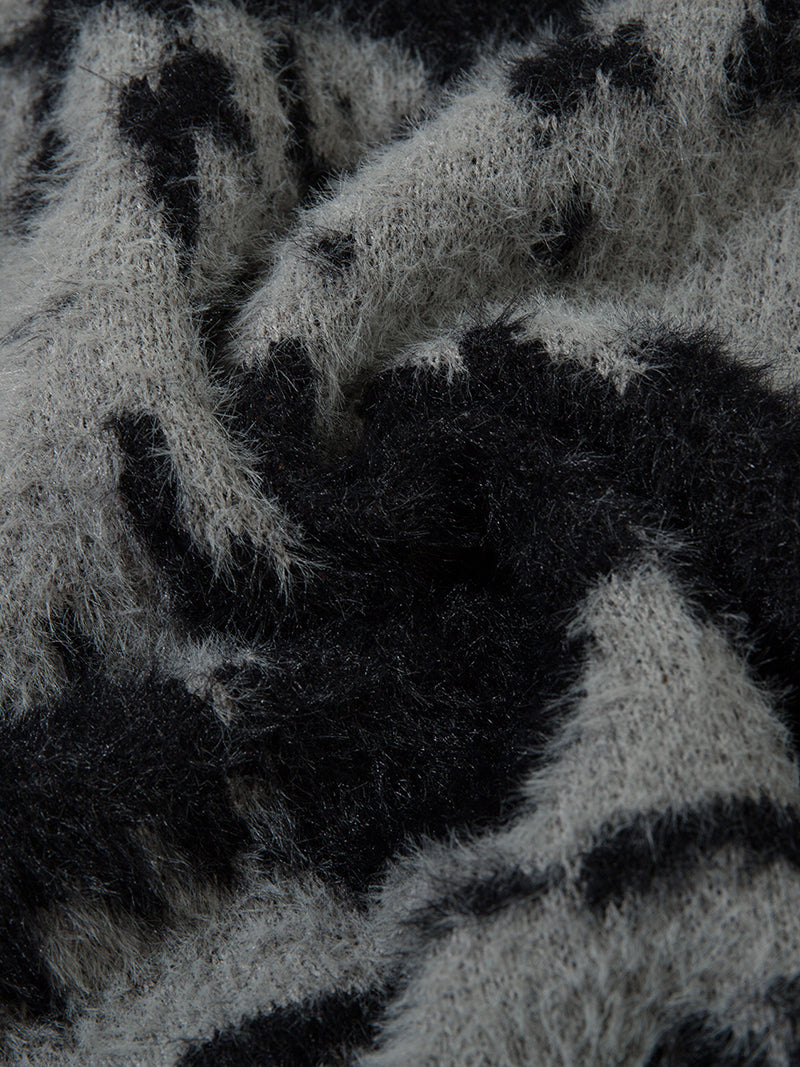 Add a touch of luxury and comfort to your winter wardrobe with this abstract patterned fuzzy knit sweater. Whether you're dressing up for a night out or layering for a casual day, this sweater is the ideal choice for style-conscious individuals.