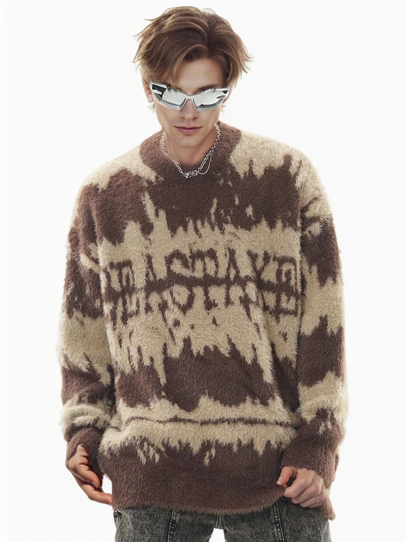 Step up your winter fashion game with our fuzzy knit sweater, designed for both men and women. This sweater showcases a striking abstract pattern and is available in two stylish color options: classic black and sophisticated coffee brown. Crafted with meticulous attention to detail, this sweater is made from a unique blend of materials, offering warmth, comfort, and a chic look for the cold season.
