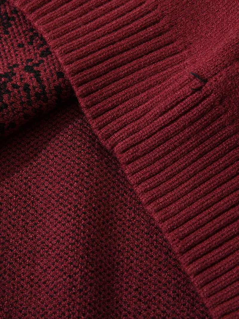 Distressed Detailing: Purposefully distressed fabric elements give this sweater a vintage, worn-in appeal.