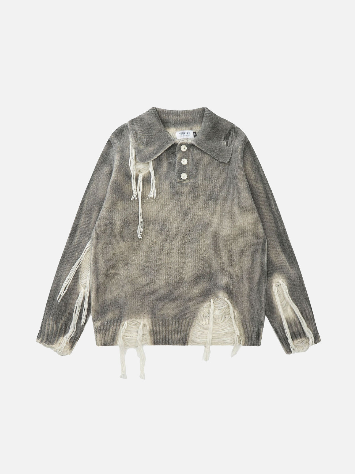 Stand out with the TALISHKO Gradient Distressed Polo Sweater, designed for those who love unique, bold fashion. Featuring a gradient wash and distressed details, this sweater blends casual comfort with a rebellious twist. The polo collar and button-up design add a touch of classic style, making it perfect for layering or wearing solo. Made from high-quality, soft fabric, this sweater provides a relaxed fit ideal for cooler weather and streetwear-inspired outfits. Express your style with a piece that’s both eye-catching and comfortable.