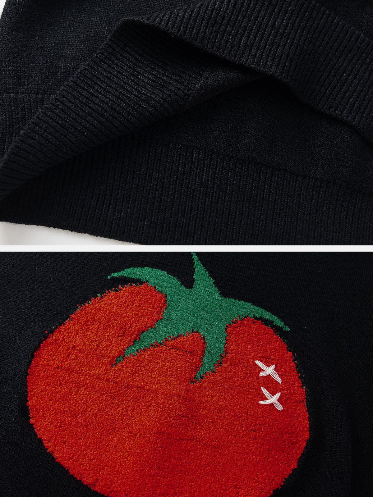 Cozy up with the vibrant charm of our Tomato Jacquard Sweater. Its playful design brings a burst of freshness to your wardrobe, perfect for those who love to blend comfort with a splash of whimsy. A delightful pick for a casual, yet spirited look.