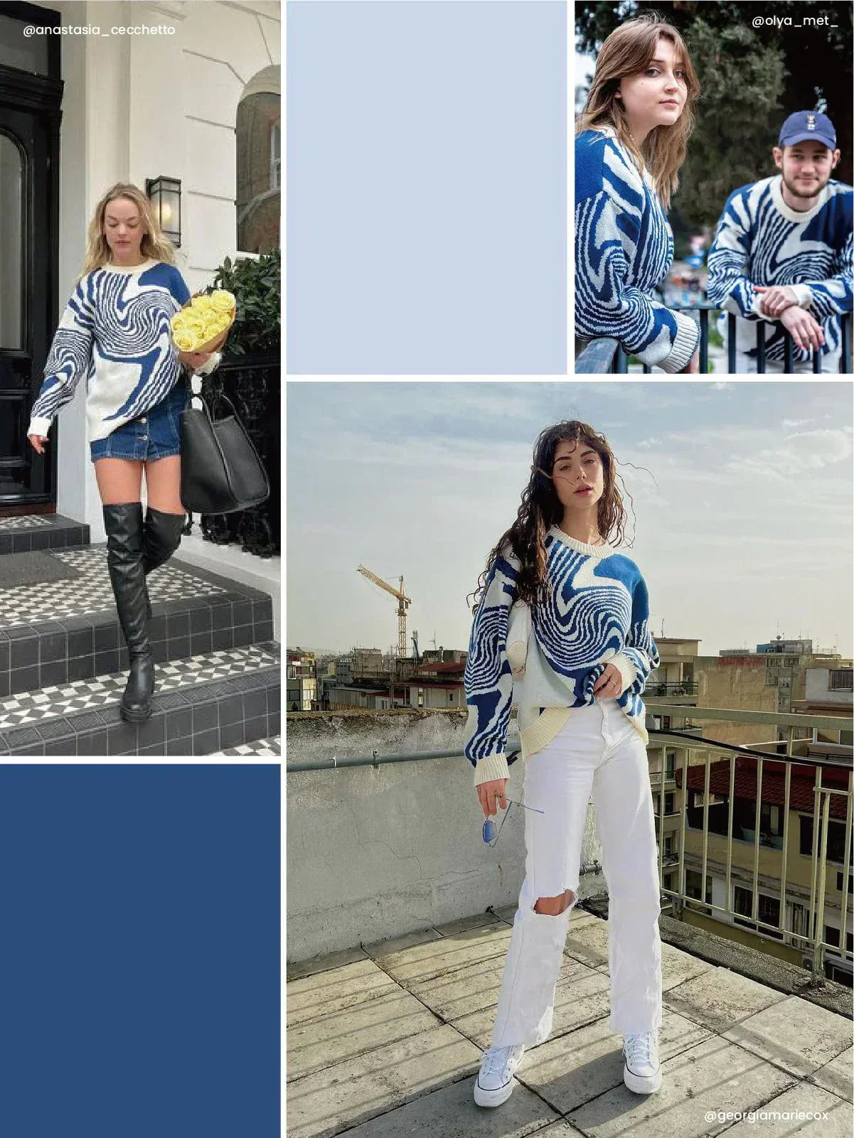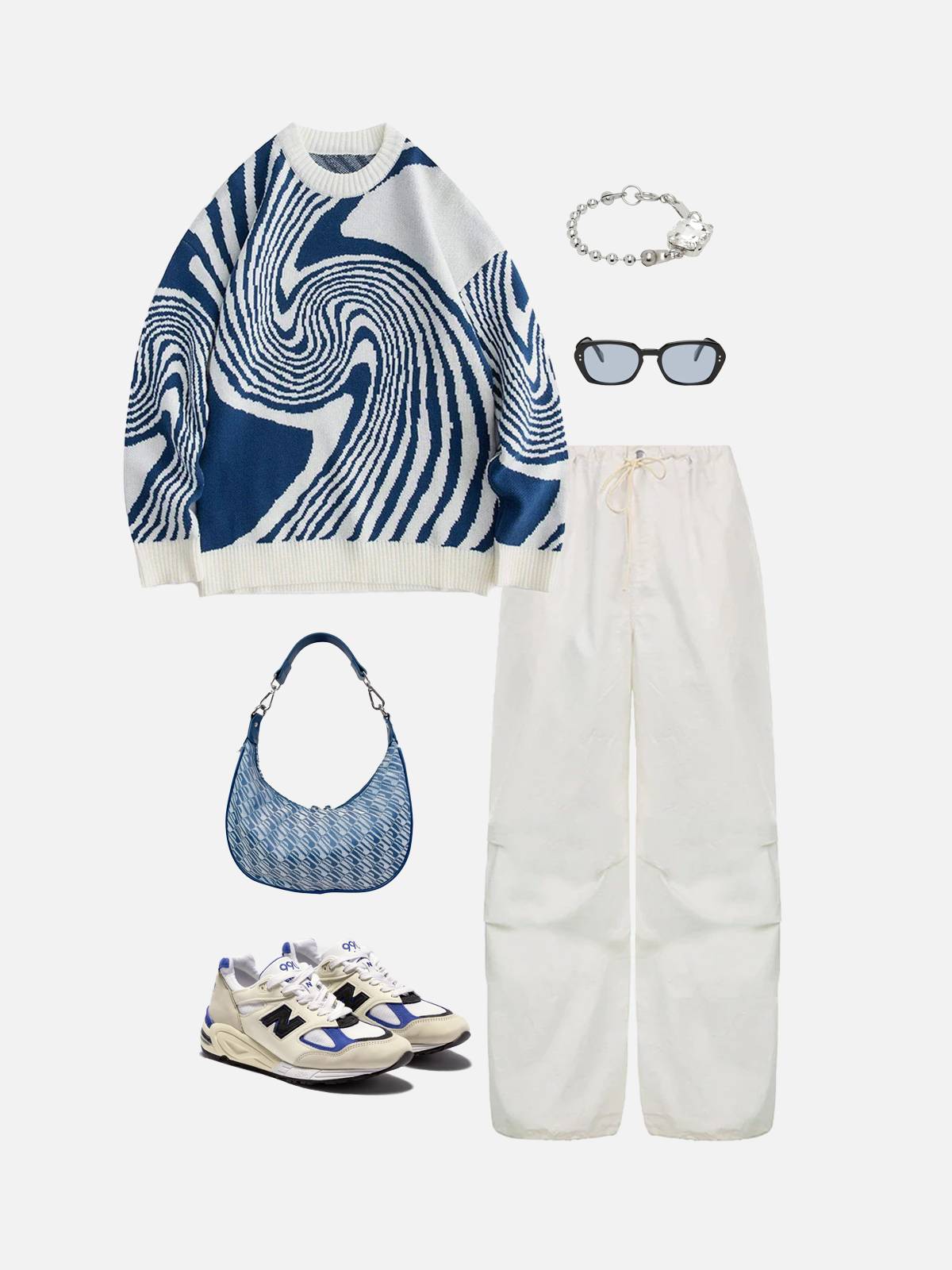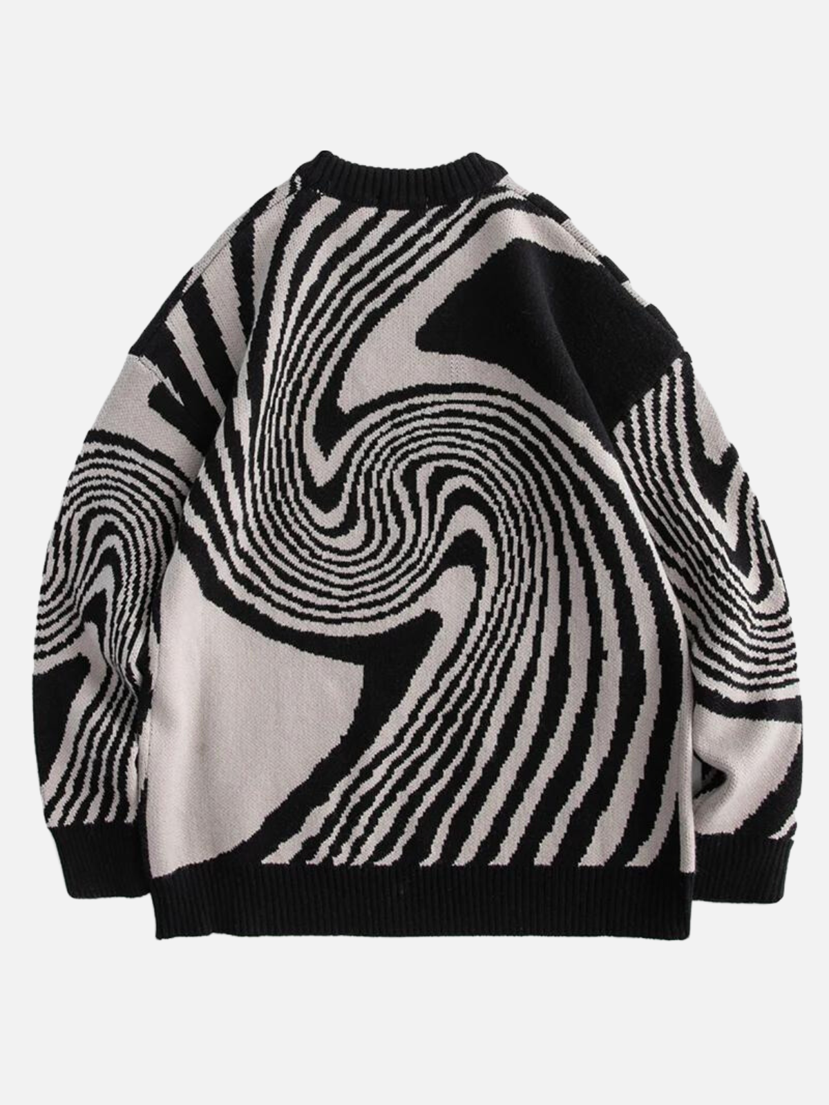 Dive into the depths of style with TALISHKO's Whirlpool Knit Sweater. The mesmerizing navy and white swirls pull you into a world of intricate design and cozy warmth. It's not just a sweater; it's a fashion statement that turns heads and warms bodies with its snug embrace.