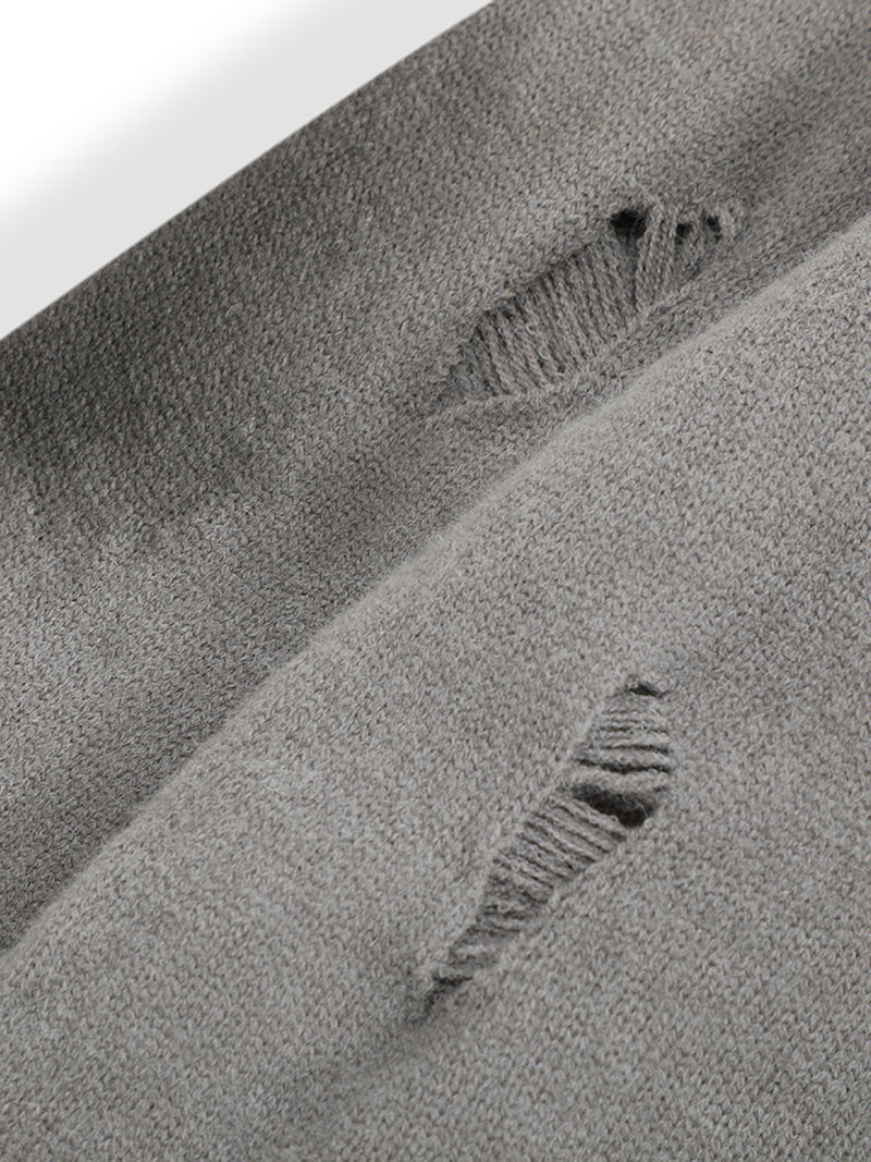 Distressed Detailing: The strategically placed distressed patches add a trendy, edgy vibe to the sweater.